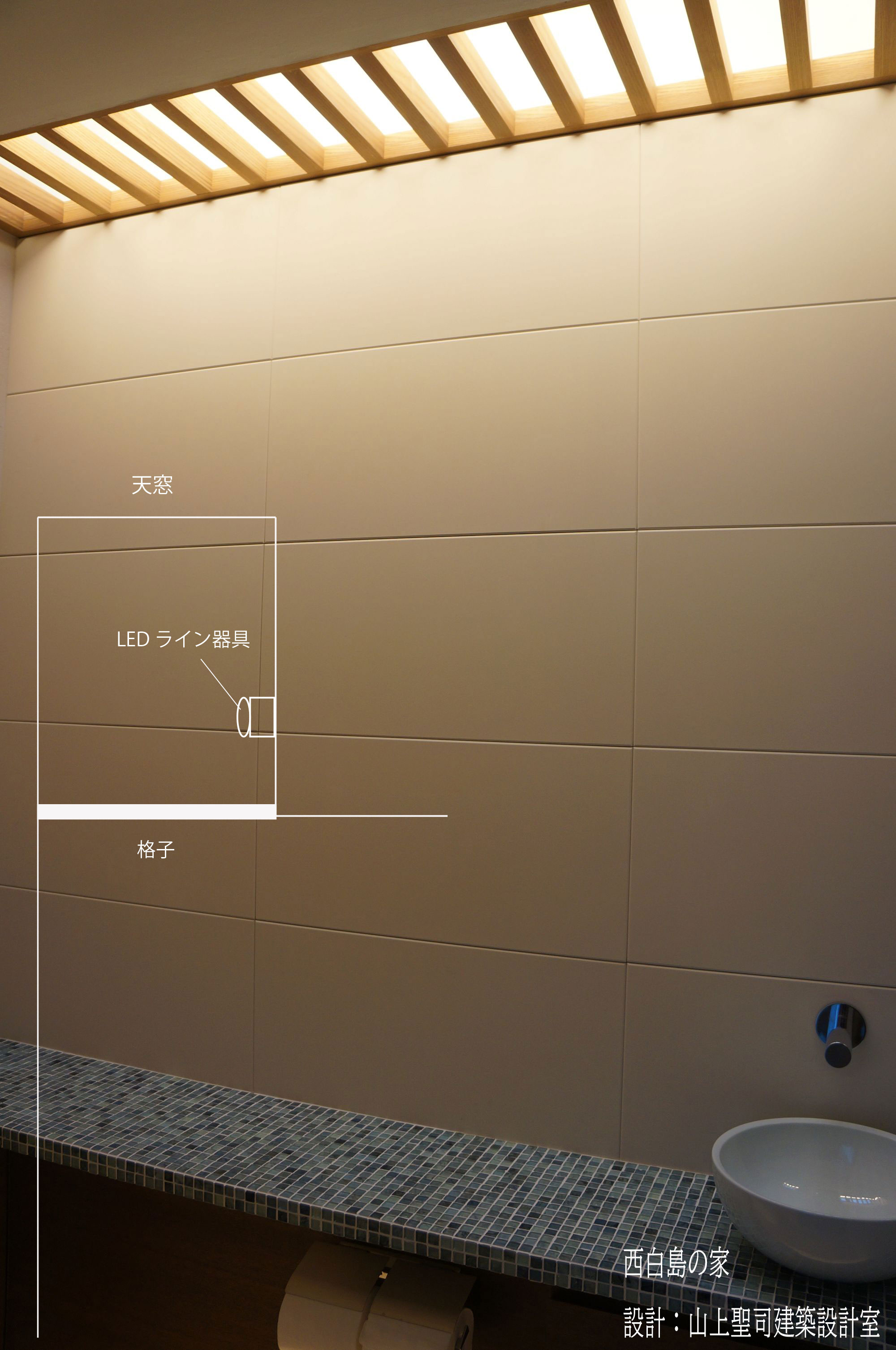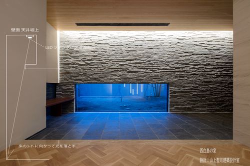 また、ホールは上に向かって先つぼまりな形態をしているため、下から見上げるとスカイライトはより強調されて見えるようになっています。