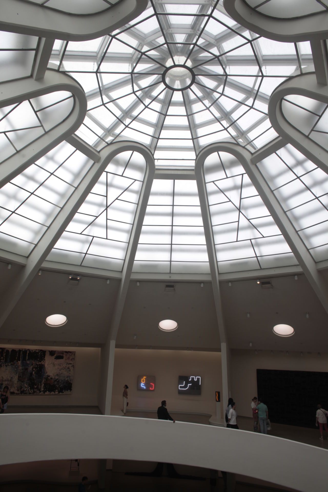 このようにグッゲンハイム美術館は、建物の形態と展示方法、空間演出が見事に調整された美術館と言えます。