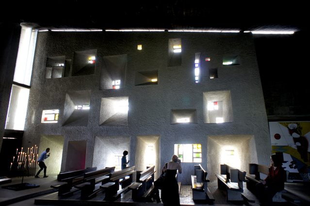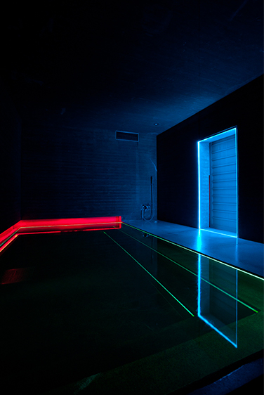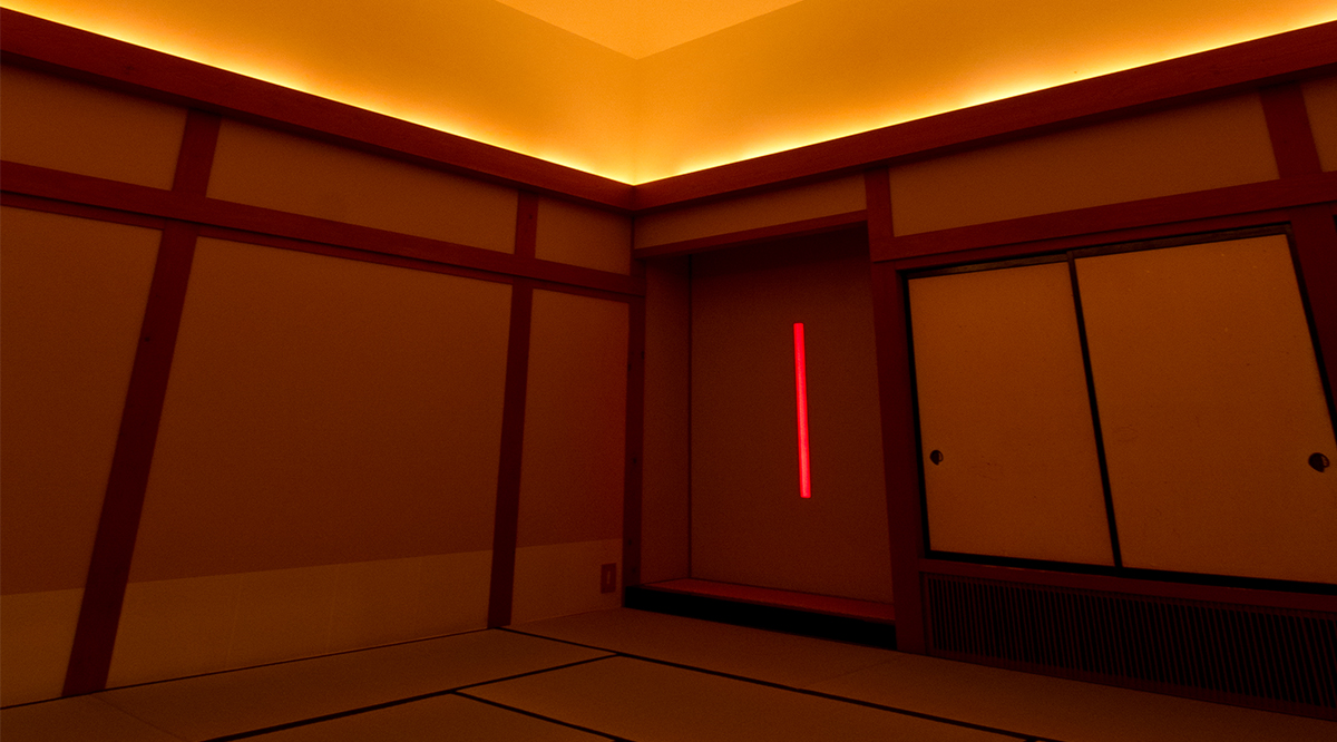 一方で、作品の展示されている外周部には自然光と人工照明を併用することで光を集中させ、