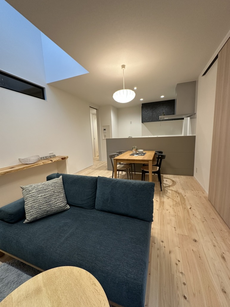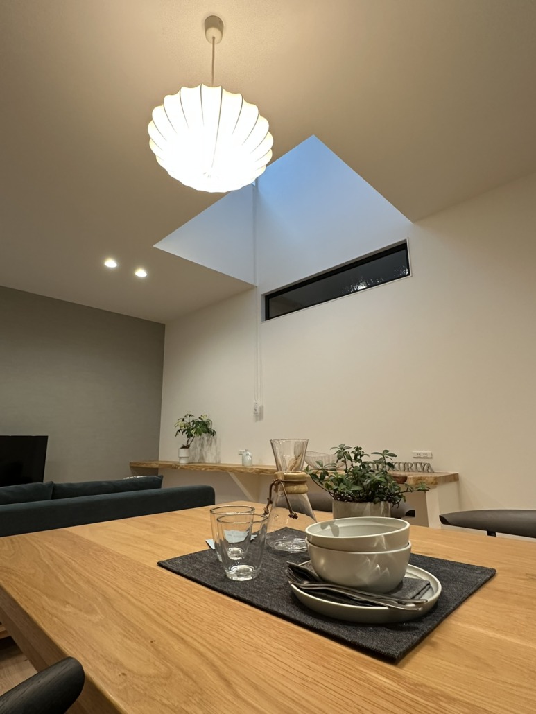 建築は、自然素材を使用したマットでくすみトーンのナチュラルモダンなテイストでまとめられている。